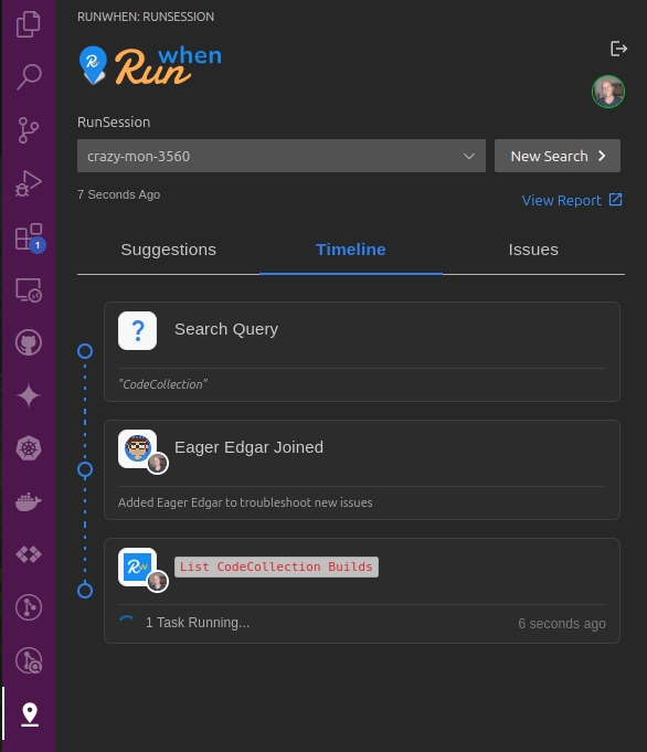 To assist with visibility and debugging of CodeBundle builds, Authors can be added to the CodeCollection Authors workspace in the RunWhen platform. This workspace provides tools for Authors to use when determining if an image is still building, if it has errored out, and so on. If you would like to be added to this workspace, or have a request for more troubleshooting tasks, please reach out through Slack.