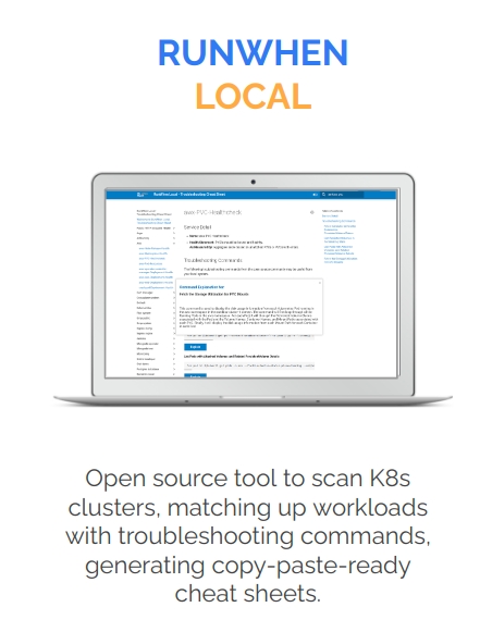RunWhen Local - An agent that assists in both initial set-up and then subsequently runs tasks when instructed by the platform. This is an open source project typically self-hosted in your own Kubernetes cluster, though a laptop version and a SaaS version is available to get started.