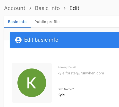 If the team at RunWhen has reason to suspect that an incident has occurred involving a potential breach of user identity (login) data, the team will make all commercially reasonable efforts to contact the impacted users by their primary email. As users may use a variety of single-sign-on technologies to access RunWhen, the system maintains a primary email address for each user that can be edited on the profile page as shown below.